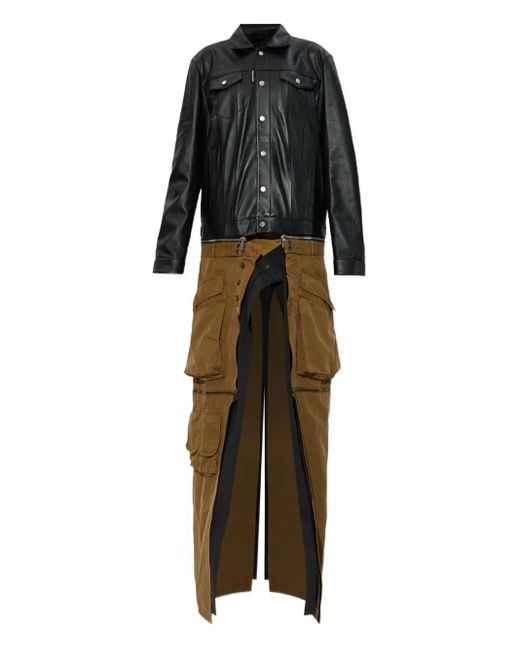 Black button fastening point collar long sleeves chest pockets paneled design Size: L. Gender: Female. Material:Leather/Cotton. Color: black