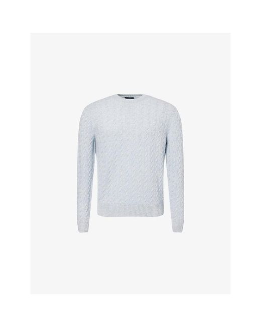 Men's Blue Cable-Knit Crewneck Cashmere And Linen Sweater