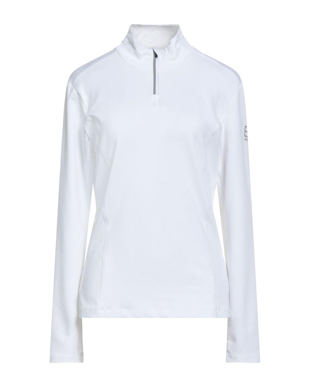 French terry, stretchy fabric, solid color, brand logo, half-zip neckline, long sleeves, machine wash, do not bleach, do not tumble dry , Color: White , Size: XS