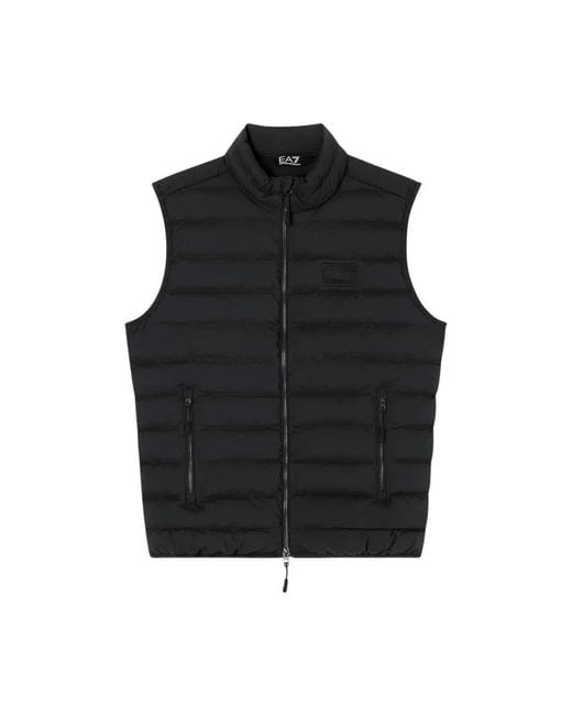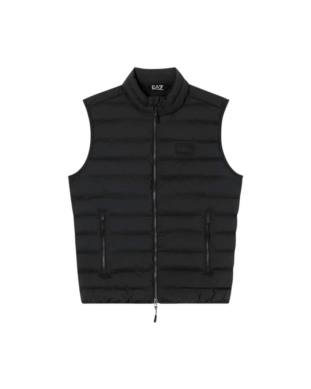 Emporio Armani EA7 Padded Gilet combines a minimal silhouette with technical performance for sporty city layering. The piece stands out for its windproof, water-repellent finish and horizontal quilting. Key attributes: Black | Technical fabric | Windproof treatment | Water-repellent finish | Padded insulation | Front zip closure | Two side pockets | Sleeveless gilet | Horizontal quilting | Minimal silhouette | EA7 logo patch Color: black
