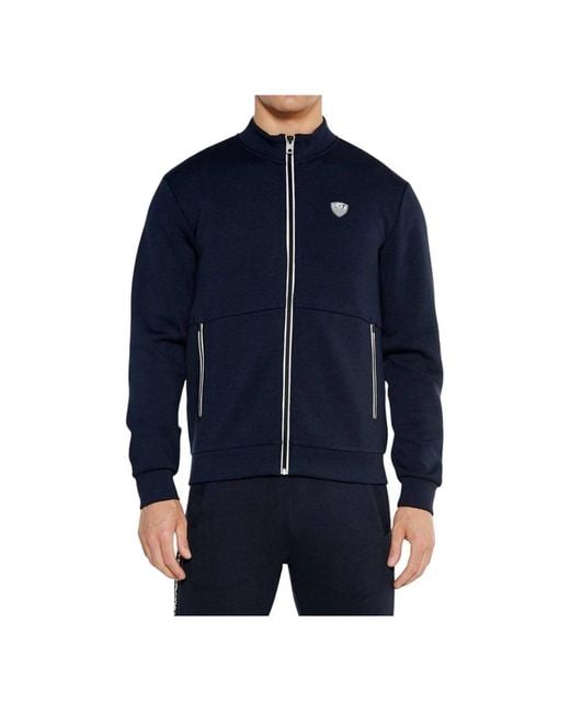 Emporio Armani EA7 zip-through sweatshirt that blends sporty-chic styling with practical zip closure—designed for casual wear and light activity. Key attributes: Blue | Zip-through closure Color: blue