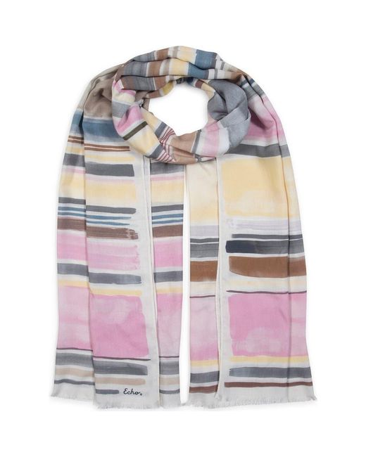 Woven from 100% modal, this 38 × 72 wrap features a soft, fluid drape with ½ self-fringe at the bottom ends. Its painted stripe design adds a contemporary, artistic touch, making it a versatile layer that brings effortless style and visual interest to any ensemble. Color: pink