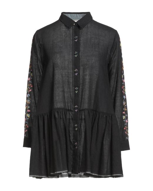 Peplum shirt, wool, flannel, solid color with appliqués, embroidered, classic collar, long sleeves, buttoned cuffs, button fastenings, hand wash or dry clean, do not bleach, do not tumble dry , Color: Black , Size: S
