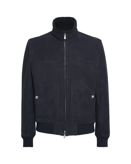 Men's Blue Shearling Bomber Jacket