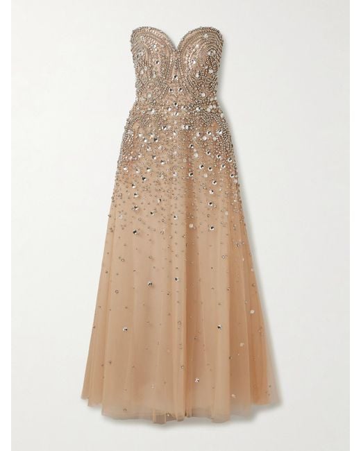 Women's Natural Strapless Embellished Tulle Gown
