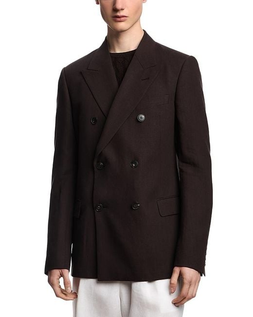 - Linen Double Breasted Peak Lapel Blazer