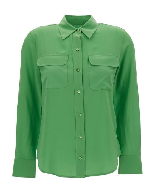 Signature Slim Fit Silk Button-Up Shirt - Green