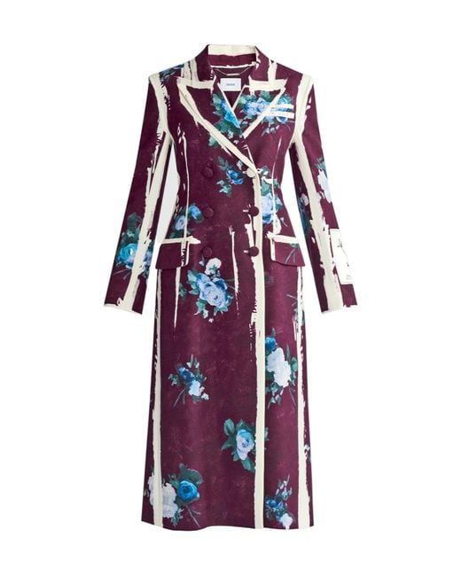 Floral Double-Breasted Coat Viscose/Silk - Red