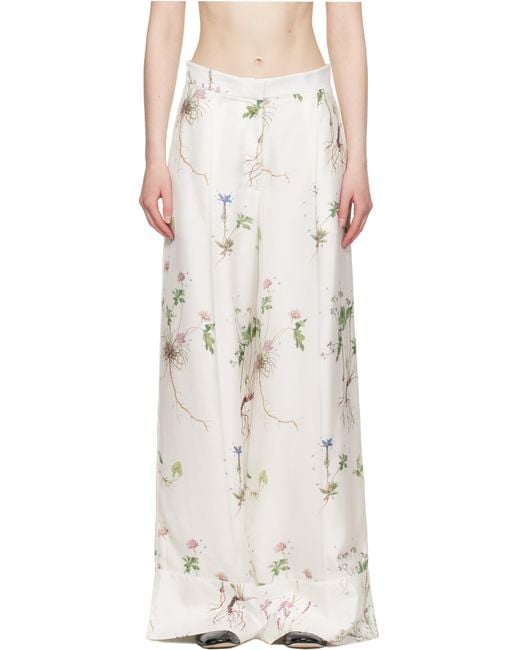 Wide-leg silk twill pants. Printed floral pattern and piping throughout. · High-rise · Two-pocket styling · Zip fly · Pleats at front · Creased legs · Vented cuffs · Full silk voile lining Supplier color: Botanical violet white