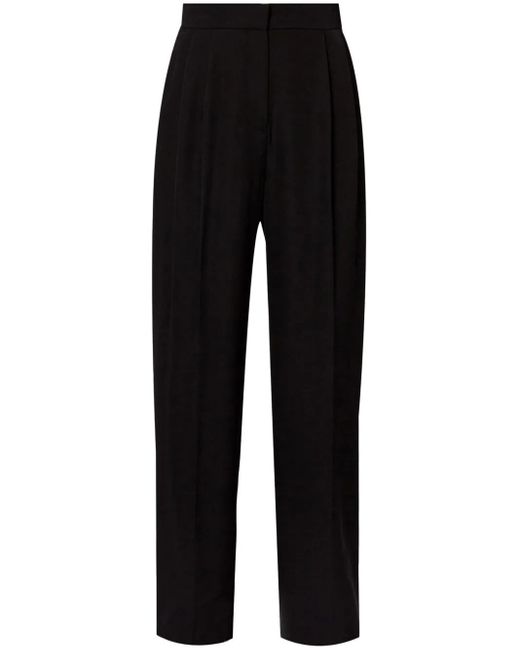 Black virgin wool twill weave concealed front zip fastening high-rise pleat detailing slip pockets to the sides pressed crease straight leg Size: 8. Gender: Female. Material:Virgin Wool/Cupro. Color: black