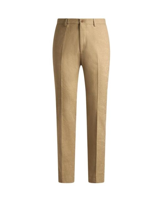 Tailored pants in slightly stretchy cotton jacquard fabric. They feature an all-over floral motif and are complete with the classic pressed creases. Roma regular fit High waist Rear button-through welt pockets Concealed zip and button closure Made in Italy The model is 6' 1½" (187 cm) tall and wears a size 48 (IT) Color: natural