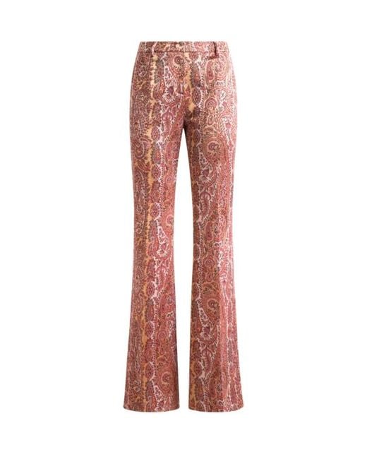 Flared-leg pants in slightly stretchy cotton-blend jacquard jersey. This garment stands out for its all-over Paisley motif with foliage-inspired elements. Fit-and-flare fit Regular-rise waist Rear welt pockets Concealed hook and zip closure Made in Italy The model is 5' 9½" (176 cm) tall and wears a size 40 Color: pink