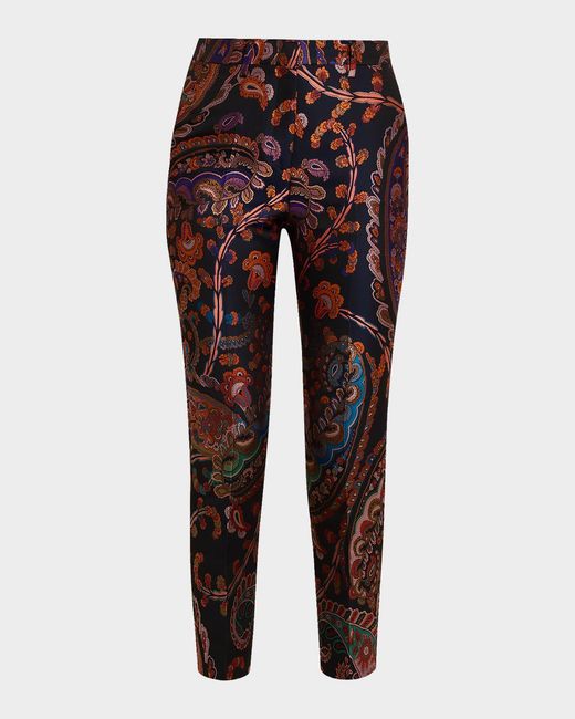 Women's Red Paisley Silk Brocade Slim-Fit Pants