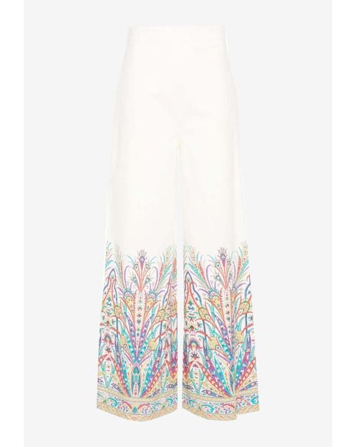Material: 97% cotton, 3% elastane. Back zip and hook closure. Floral print. Pressed crease. Wide-leg cut. Kindly note that this product, as well as many other Etro items, is made using an allover print and it falls differently on each garment, so the product you will receive may differ from the one in the picture. Color: white