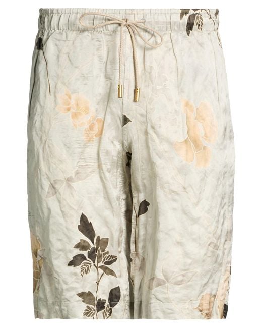 Casual shorts, satin, floral-print, no appliqués, high waisted, drawstring fastening, pockets, dry clean, do not bleach, do not tumble dry , Color: Light gray , Size: S