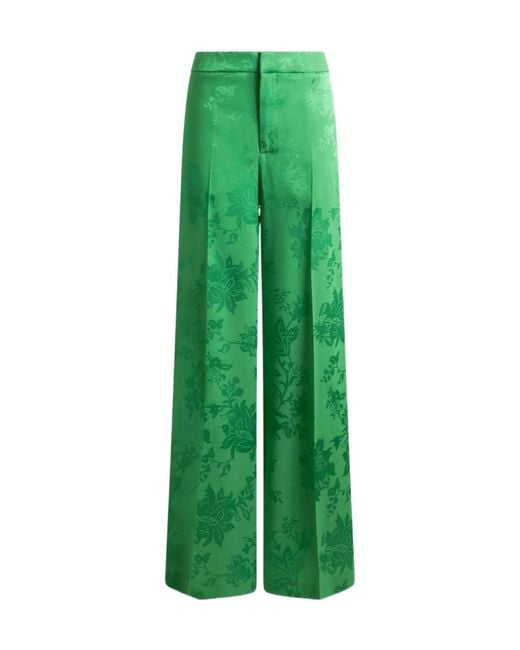 Women's Green Wide-Leg Jacquard Pants With Floral Motif