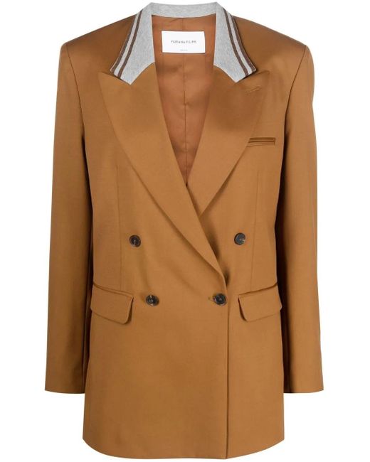 Women's Brown Contrast-Collar Double-Breasted Blazer