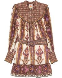 Go to Rue La LaAbout the brand: Vibrant prints and flowing cuts inspired by Brazil. Eyelet Patch Beaded Mini Dress in white with tiered skirt, ruffle trim, and deep V-neck Approximately 35in from shoulder to hem Model