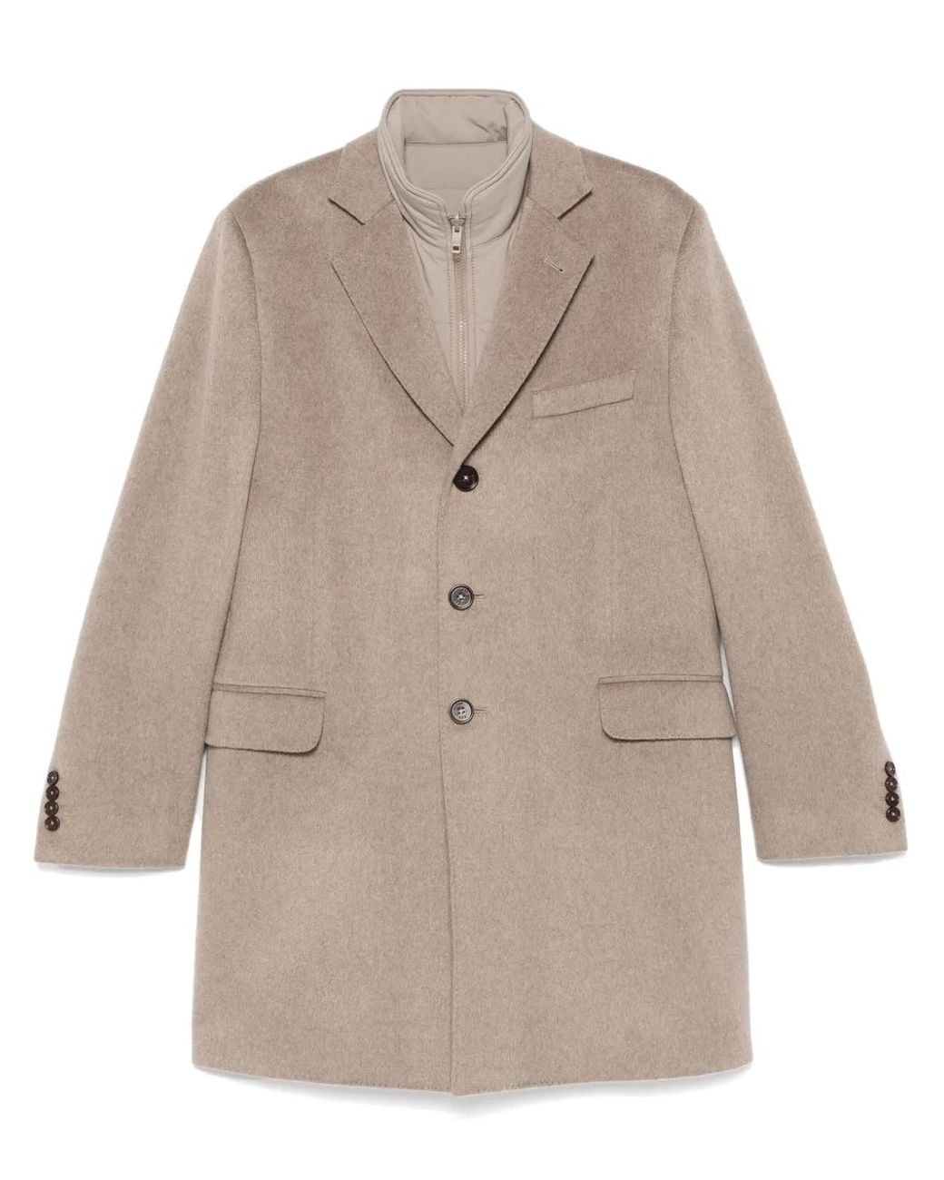 Easy Db Single-Breasted Layered Coat - Natural