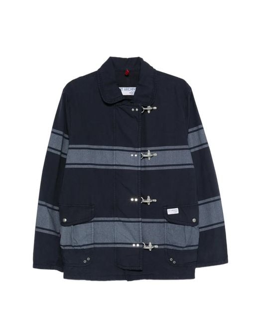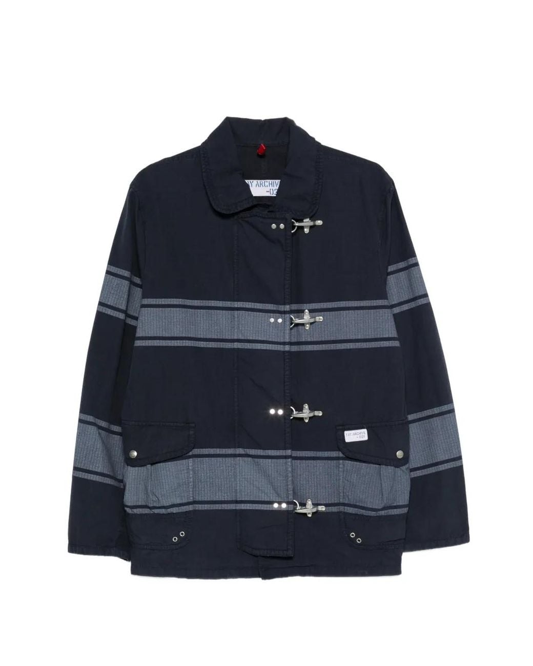Blue cotton striped pattern toggle fastening patch pockets classic collar Size: S. Gender: Male. Material:Cotton.
