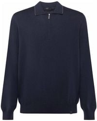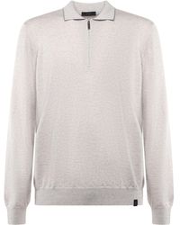 Go to Italist- Made of plain wool knit - Partial zip closure - Long sleeves - Logo patch at the bottom - Made in Italy - Size shown in photo is 48 - Designer color: Gray