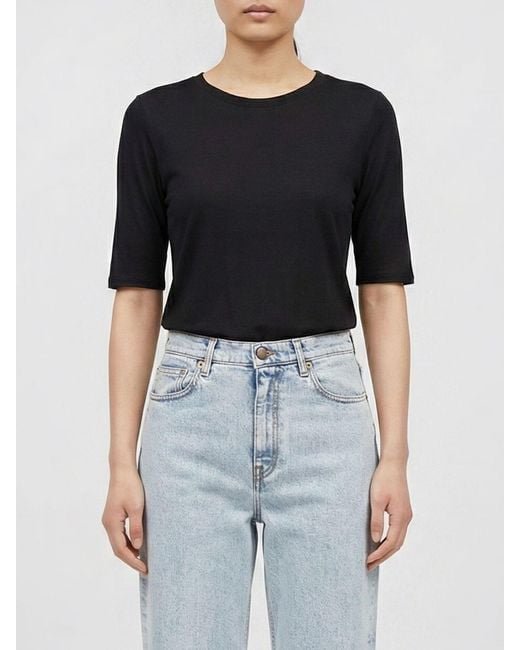 Striped-Pattern Short-Sleeve T-Shirt - Black