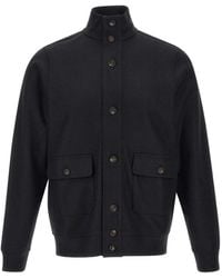 Go to FARFETCHBeige merino wool standing collar button fastening flap pockets long sleeves ribbed hem Size: 52. Gender: Male. Material:Merino. Color: white