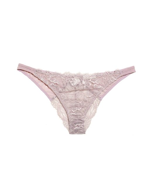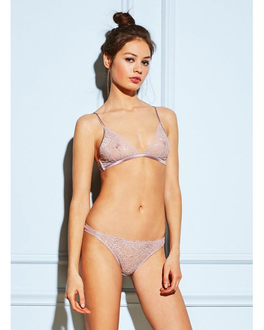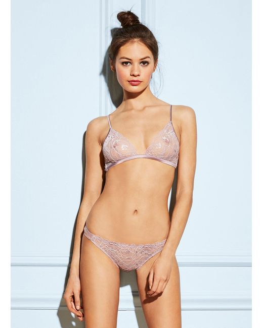 Sitting pretty. The Chateau Lace Cheeky in jasmine pink has subtle scalloping along the top hem. Made with sheer tulle and stretch French Leavers Lace. Cheeky cut with playful peek-a-boo and bow detail in back. Complete the set with a matching Chateau Lace bra. 90% Polyamide & 10% Elastane. Lace: 85% Polyamide, 15% Elastane. Hand wash cold. Hang or lay flat to dry. Model is wearing a size 2, equivalent of a Small. Color: multicolor