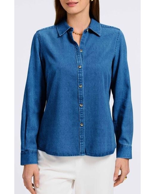 Every closet craves this tailored shirt crafted from soft denim for a classic look. Color: blue