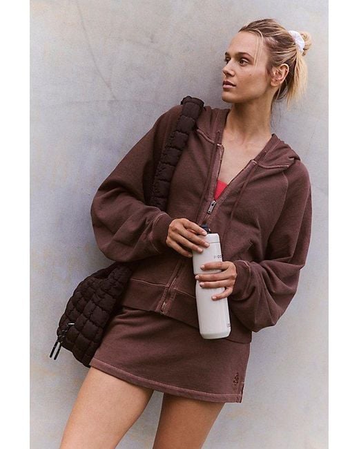 Go from the studio to the street in this soft set featured in a french terry fabrication with a slouchy zip-up and matching skort. **Fit:** Top: slouchy, relaxed fit; falls below the hips; skort: mid-rise, shorty-length **Features:** Soft french terry fabrication, front-zip closure, pockets for hands, hooded neckline with adjustable drawstrings, ribbed trim, wide elastic waistband, skirt with built-in shorts **Why We ❤ It:** This versatile set can be worn post-workout or for a casual day spent r Color: brown