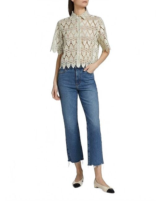 Women's Blue The Ruler Crop Frayed High-Rise Slim-Leg Jeans