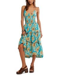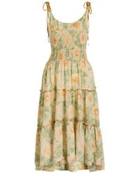 Go to Rue La LaAbout the brand: The free-spirit essence and artistry of Bohemian fashion. Adriel Midi Dress in nutmeg combo with self-tie shoulder straps, smocked bodice, dual side seam pockets and tiered ruffle skirt Approximately 44in