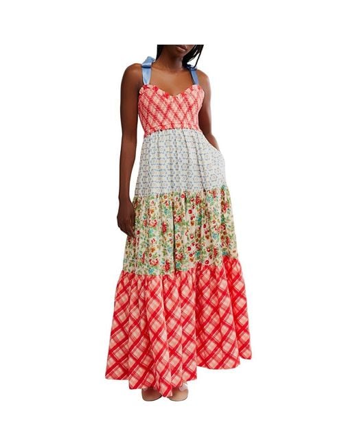 Women's Red Bluebell Mixed Print Cotton Maxi Dress