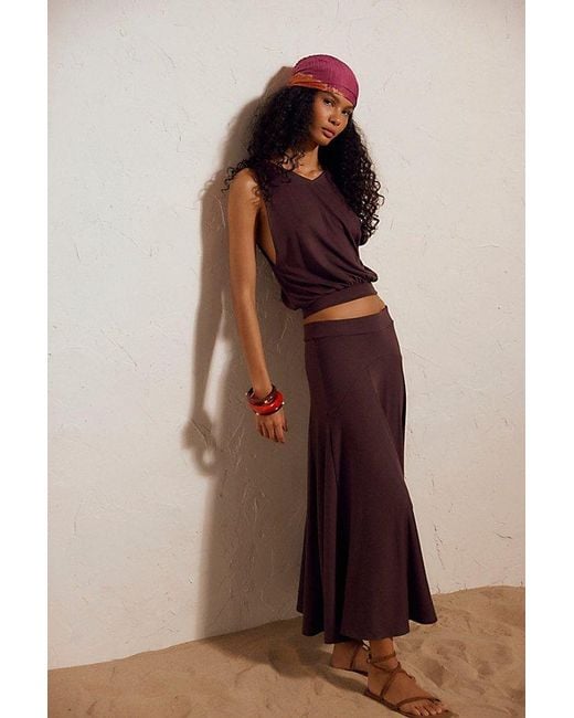 Elevated and absolutely essential, this skirt set from free-est features a v-neck, banded-hem tank and an A-line maxi skirt in a so-soft ribbed fabrication for undeniable ease. **Top:** * V-neckline * Low armholes * Full length * Banded hem **Skirt:** * Elastic waistband * A-line * Low-rise * Seamed detail Bristol Skirt Set by free-est at Free People in Aubergine, Size: S Color: brown