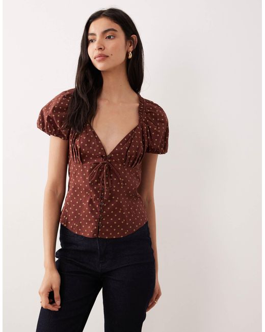 Women's Brown Polka Dot Printed Blouse