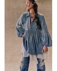 Go to Free PeopleMade to wear everywhere, this mini is featured in a soft denim fabrication and swingy silhouette with low-cut armholes and bold back cutout. **Fit:** Shapeless silhouette, mini-length **Features:** Soft denim fabrication, scoop-neckline, low-cut