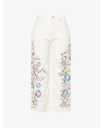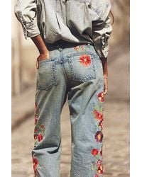 Free People Women's Natural Willow Floral Embrodiered Straight Leg Jeans