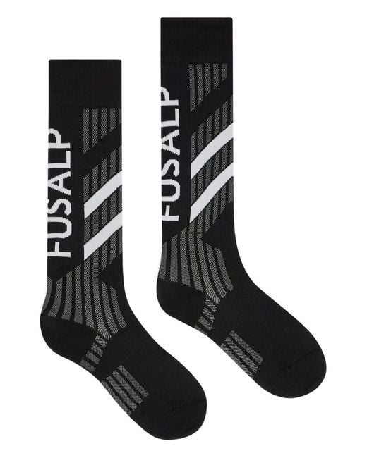 Black jacquard FUSALP signature logo calf and ankle technical knit Be sure before opening, as socks and hosiery can only be returned in their original, unopened packaging. Size: M. Gender: Unisex. Material:Polyamide/Elastane. Color: black