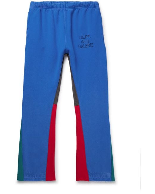 Men's Blue Flared Denim-Panelled Logo-Print Cotton-Jersey Sweatpants