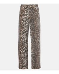 Ganni Women's Gray Leopard Print Cropped Jeans