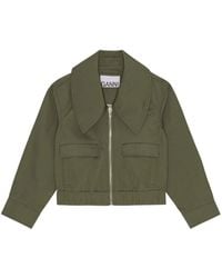 Go to FARFETCHMulticolored cotton patchwork oversized jacket from Ganni featuring long sleeves, a classic style and a patchwork design. POSITIVELY CONSCIOUS: GANNI measure the carbon footprint of every item, and on each you'll find the