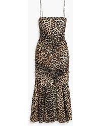 Ganni Women's Brown Leopard-print Linen-silk Blend Midi Dress
