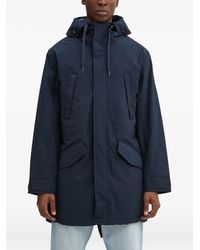 Go to FARFETCHGreen faux-fur trim hood zip fastening welt pockets drawstring waist padded interior Size: 50. Gender: Male. Material:Fabric. Color: gray
