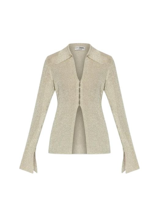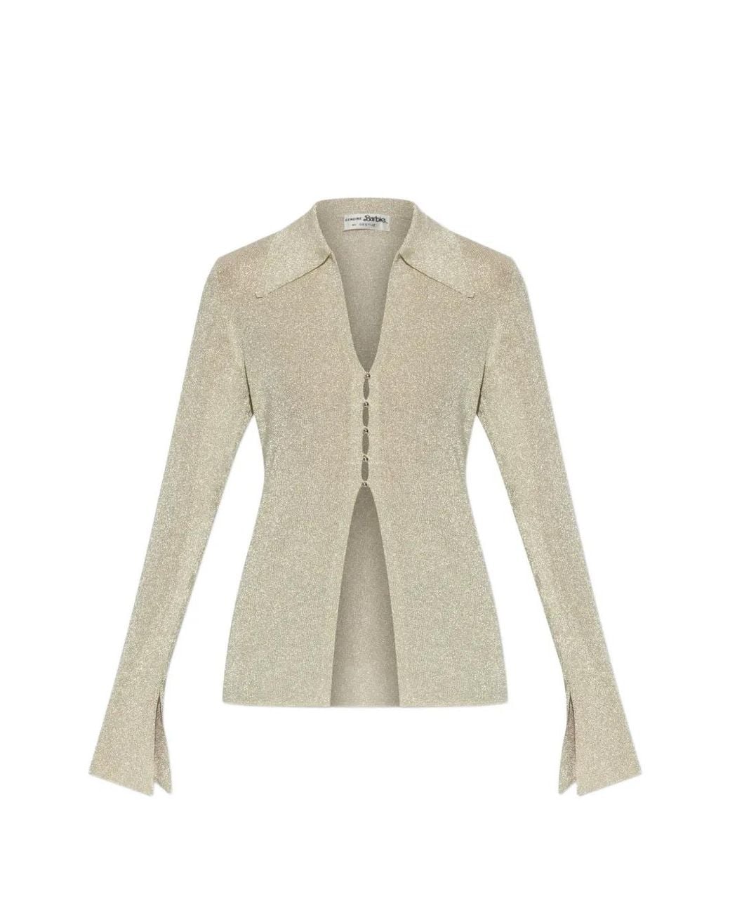 Women's White Metallic-Effect Split-Cuff Top
