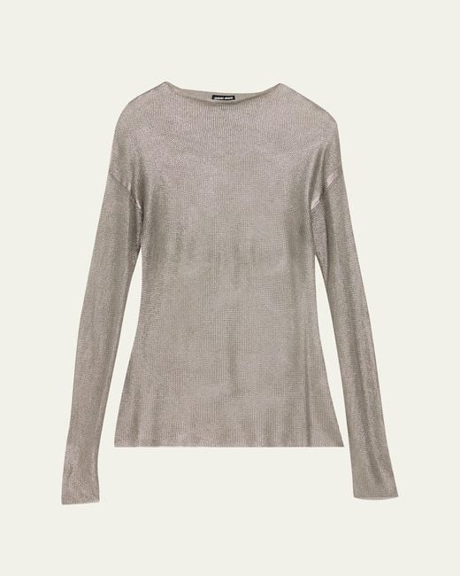 Women's Gray Laminated Mesh Long-Sleeve Top