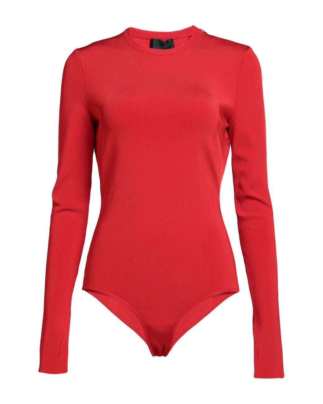 Jersey, no appliqués, solid color, crewneck, long sleeves, no pockets, crotch of body, stretch , Color: Red , Size: XS
