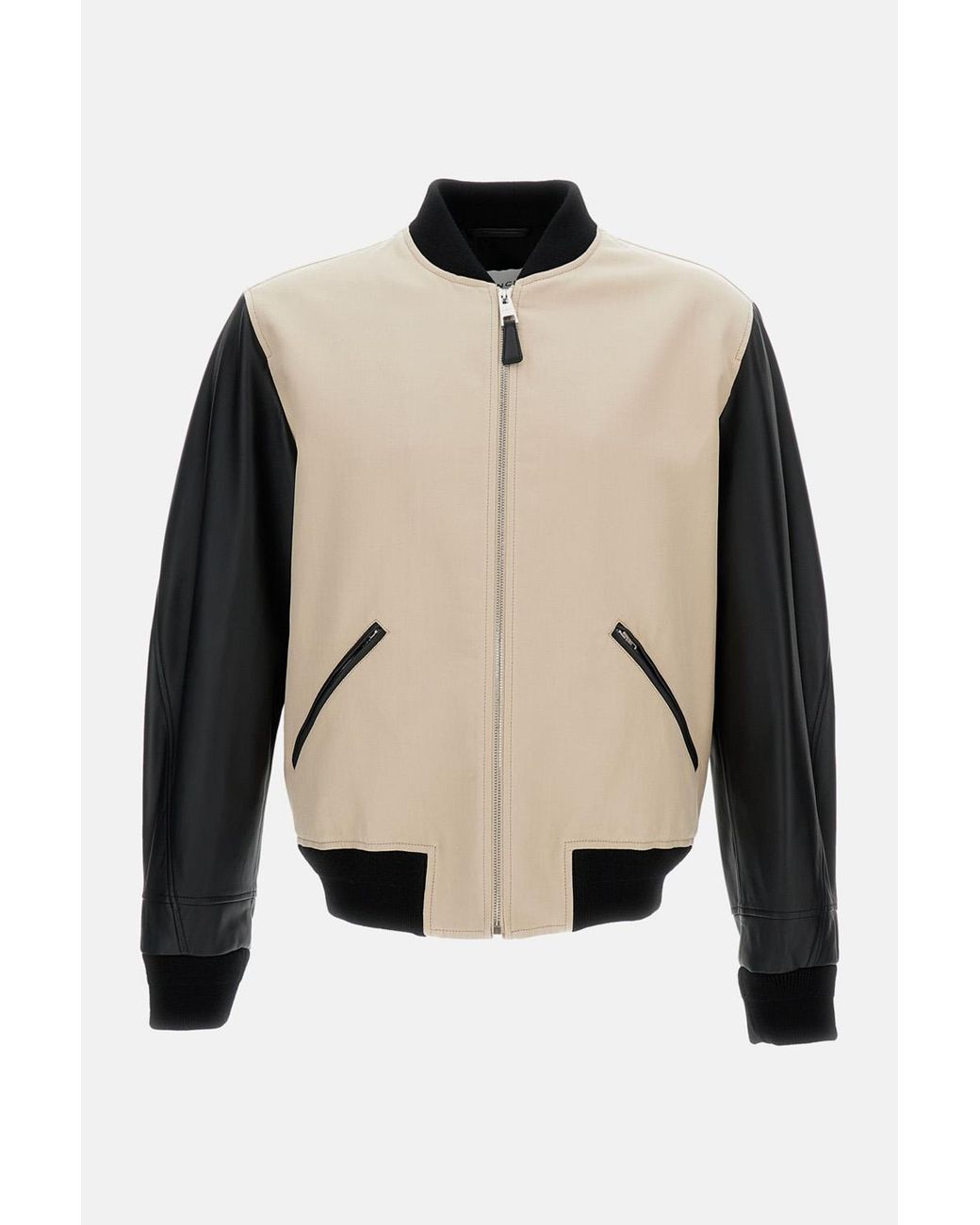 Bomber-style jacket with ribbed collar and cuffs. Front zip fastening. Zip pockets with leather trim. Leather logo patch on the back. Rib-knit profiles. Lined interior. Made in Italy.. . Composition 100 CO Color: natural