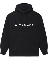 Go to TheDesignerBoxLong-sleeved hooded sweatshirt in soft brushed fabric. Archetype line. GIVENCHY signature printed on the front. Drawstring on the hood. One kangaroo pocket on the front. Ribbed collar and cuffs. Slim cut. Gender: Men.