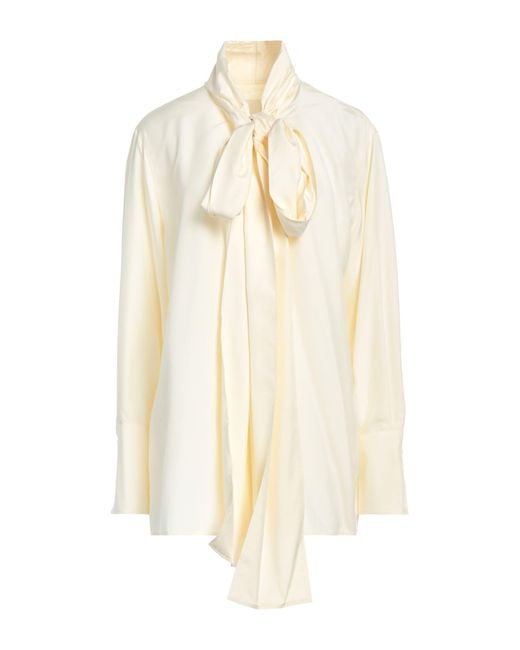 Woven, no appliqués, solid color, long sleeves, buttoned cuffs, button fastenings, without pockets, dry clean, do not bleach, do not tumble dry, bow blouse , Color: Beige , Size: 2
