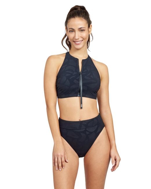- Standard Free Sport Geo Club High Neck Bikini Swim Top With Zip